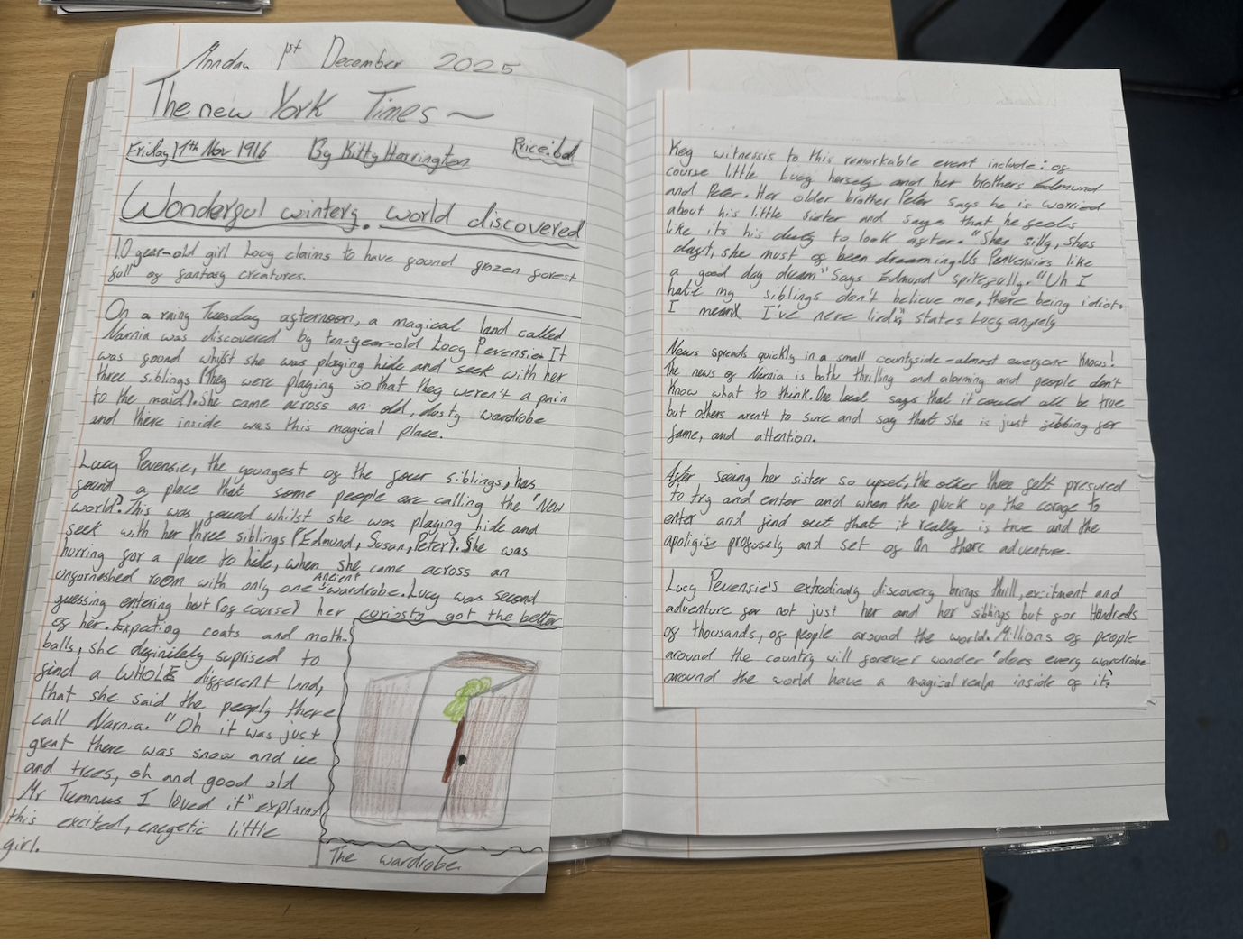 Owls have had a great week! They wrote their final drafts of their Newspaper Reports about the discovery of Narnia. I was so impressed with their writing and the language they included. Their final pieces are presented beautifully!